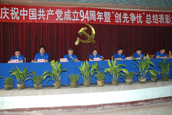 7月1日上午8時(shí),南陽向東公司紀(jì)念建黨94周年暨創(chuàng)先爭(zhēng)優(yōu)總結(jié)表彰大會(huì)在文化宮二樓會(huì)議廳隆重召開。黨委委員朱超英、喬新濤、姜華、王漢臣、郭方、丁玨、林宗亮在主席臺(tái)就坐。會(huì)議由黨委委員林宗亮主持。