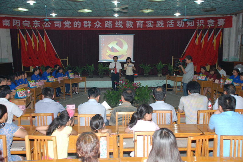 為推動(dòng)黨的群眾路線教育實(shí)踐活動(dòng)深入開(kāi)展,掀起教育實(shí)踐活動(dòng)的學(xué)習(xí)熱潮,激發(fā)和調(diào)動(dòng)廣大黨員干部、職工參與教育實(shí)踐活動(dòng)的積極性和主動(dòng)性。南陽(yáng)向東公司于6月26日晚7:30在文化宮二樓會(huì)議廳舉辦了黨的群眾路線教育實(shí)踐活動(dòng)知識(shí)競(jìng)賽活動(dòng)。