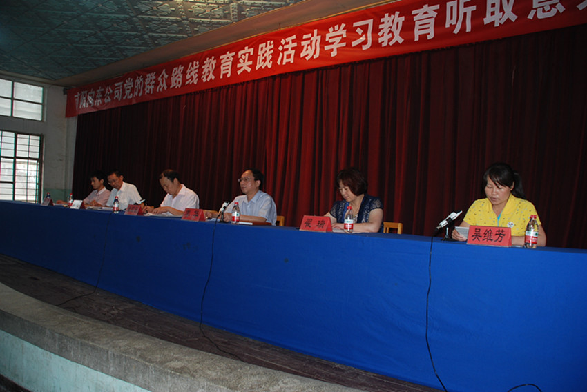 ??? 6月16日上午十點(diǎn),公司在文化宮二樓會(huì)議廳召開(kāi)黨的群眾路線教育實(shí)踐活動(dòng)學(xué)習(xí)教育、聽(tīng)取意見(jiàn)環(huán)節(jié)述評(píng)大會(huì)??h直第四督導(dǎo)組長(zhǎng)張國(guó)顯,副組長(zhǎng)陳新陽(yáng),成員翟瑞、劉仁,公司黨委書(shū)記姜華在主席臺(tái)就坐。會(huì)議由黨群工作部副部長(zhǎng)吳維芳主持。