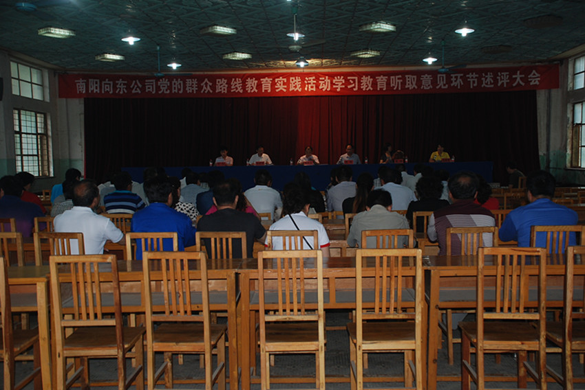??? 會(huì)上,黨委書(shū)記姜華首先作了《南陽(yáng)向東公司黨的群眾黨的群眾路線教育實(shí)踐活動(dòng)學(xué)習(xí)教育、聽(tīng)取意見(jiàn)環(huán)節(jié)工作報(bào)告》。報(bào)告從學(xué)習(xí)教育情況,聽(tīng)取意見(jiàn)情況,邊學(xué)邊查邊改情況三個(gè)方面進(jìn)行了詳闡述。在學(xué)習(xí)教育方面一是學(xué)好規(guī)定內(nèi)容,做好學(xué)習(xí)筆記;二是抓好黨委中心組集中學(xué)習(xí);三是開(kāi)展以焦裕祿等為主題的專(zhuān)題教育;四是以上率下,帶頭開(kāi)展活動(dòng);五是注重學(xué)習(xí)氛圍和學(xué)習(xí)教育效果。在聽(tīng)取意見(jiàn)方面,采取多種形式,暢通民意,廣泛聽(tīng)取意見(jiàn),并對(duì)梳理到的意見(jiàn)建議、分類(lèi)建立臺(tái)賬。在邊學(xué)邊查邊改方面,堅(jiān)持邊查邊改,重點(diǎn)解決職工群眾反映的突出問(wèn)題;堅(jiān)持職工群眾利益至上的原則,為職工群眾辦實(shí)事辦好事。