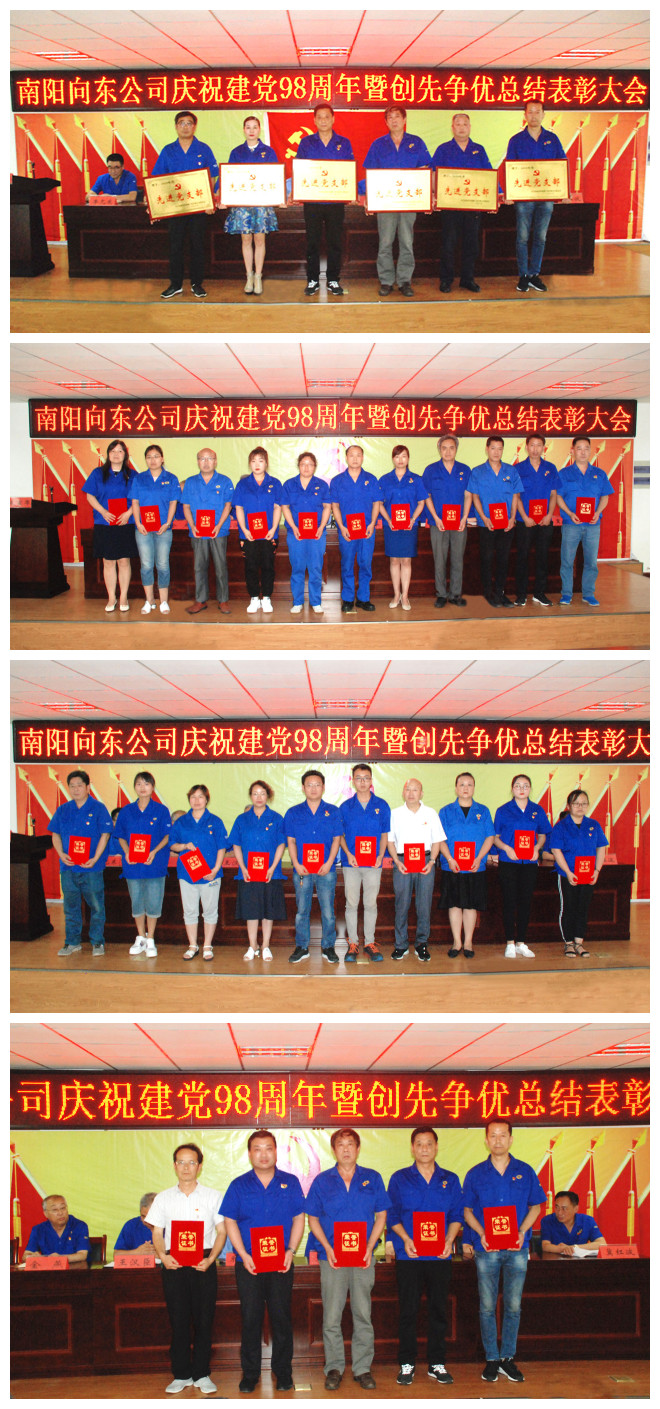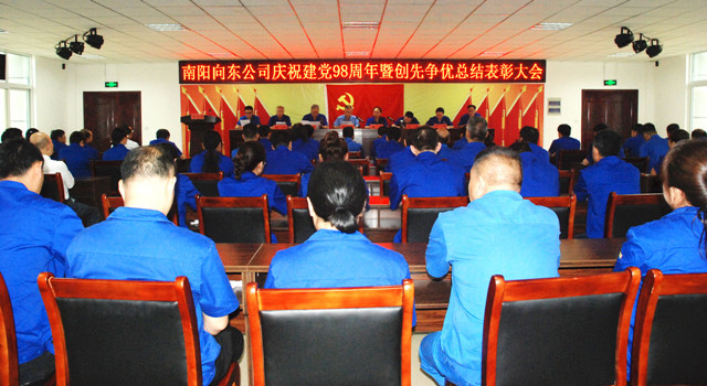 ? ? 6月28日,南陽(yáng)向東公司在向東工業(yè)園隆重召開慶祝建黨98周年暨創(chuàng)先爭(zhēng)優(yōu)總結(jié)表彰大會(huì)。公司領(lǐng)導(dǎo)喬新濤、姜華、王漢臣、郭方、金燕、丁玨、李允東、冀紅波以及來(lái)自公司各單位70余名黨員、入黨積極分子參加會(huì)議。會(huì)議由黨委委員、紀(jì)委書記王漢臣主持。