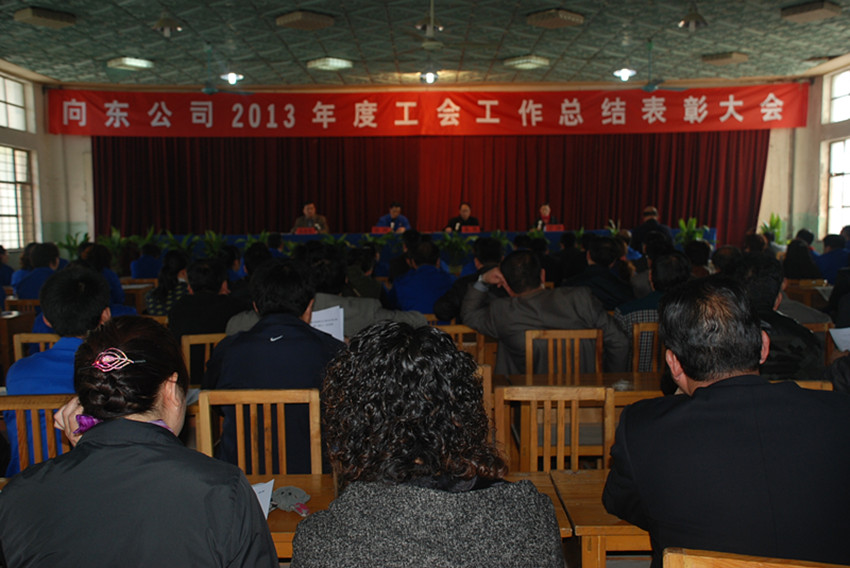 3月26日下午公司工會在文化宮二樓會議廳召開了2013年度工會工作總結表彰大會,主席臺上就坐的有南陽向東公司黨委書記姜華、北方向東公司黨委書記陳炳、工會副主席王友志,工會女工主任丁玲主持會議。