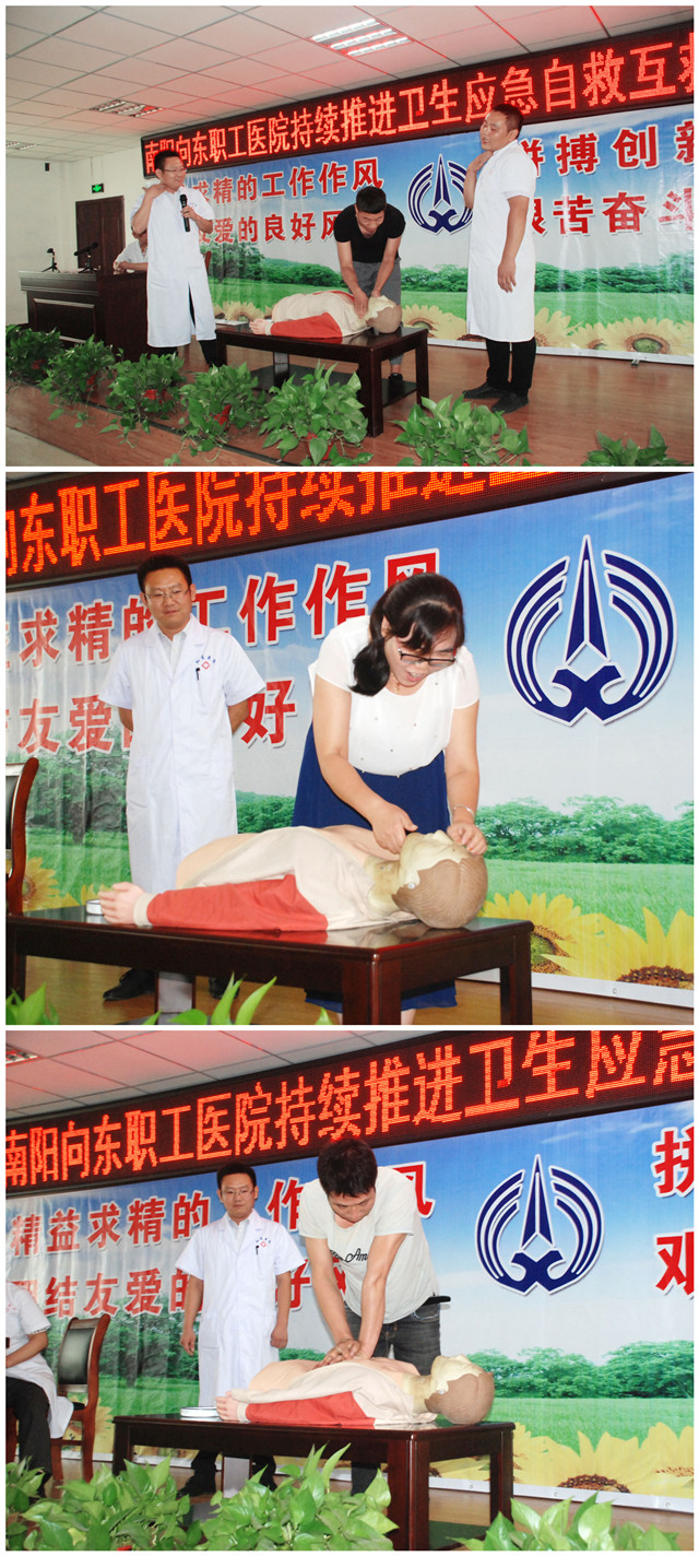 ? ? 為進(jìn)一步提高公司廣大干部職工的公共衛(wèi)生素養(yǎng),全面普及、預(yù)防、避險、自救、互救等衛(wèi)生應(yīng)急知識技能,8月28日,南陽向東職工醫(yī)院公共衛(wèi)生應(yīng)急小組一行6人來到南陽向東工業(yè)園,為園區(qū)干部職工開展心臟驟停單人心肺復(fù)蘇術(shù)應(yīng)急自救知識講座。