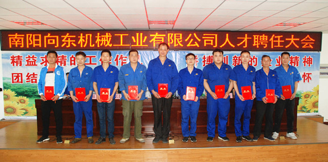 ? ? 監(jiān)事會(huì)主席王漢臣宣讀了聘任文件。大會(huì)聘任劉飛等5人為“科技骨干”、李凱歌等5人為“管理骨干”、劉中等10人為“技能骨干”,隨后大會(huì)為各類人才頒發(fā)了聘任證書??萍脊歉蓜w代表全體骨干人員作發(fā)言。
