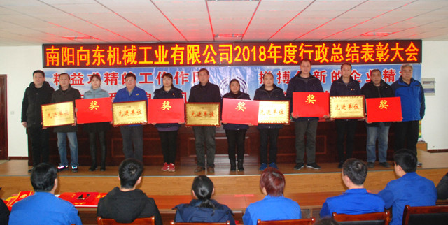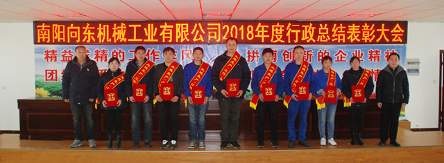 ? ? 監(jiān)事會(huì)主席王漢臣宣讀了《關(guān)于表彰2018年度先進(jìn)集體和先進(jìn)個(gè)人的決定》。南陽向東機(jī)械工程有限公司榮獲“紅旗單位”稱號;河南向東機(jī)電設(shè)備有限公司、產(chǎn)品開發(fā)與技術(shù)質(zhì)量部等五個(gè)單位榮獲 “先進(jìn)單位”稱號;李天波同志榮獲“勞動(dòng)模范”稱號;李德清、李國紅等18同志榮獲“先進(jìn)生產(chǎn)(工作)者”稱號;袁華、王軍等六名同志榮獲“優(yōu)秀中層經(jīng)營管理者”稱號。大會(huì)對獲獎(jiǎng)單位和先進(jìn)個(gè)人進(jìn)行了頒獎(jiǎng)。