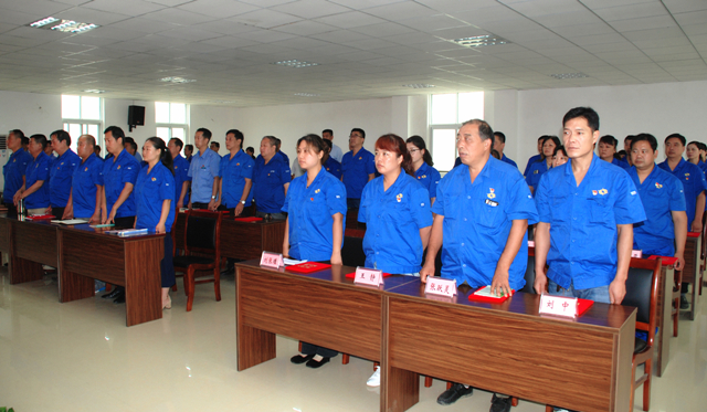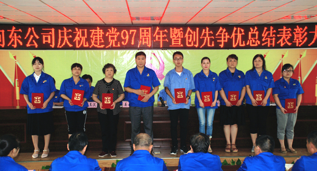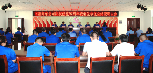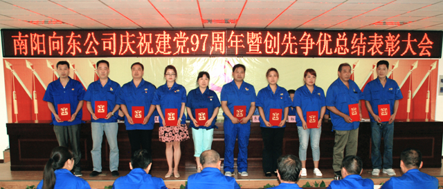 ? ?6月29日,南陽向東公司在向東工業(yè)園四層會議室隆重召開紀(jì)念建黨97周年暨創(chuàng)先爭優(yōu)總結(jié)表彰大會。黨委委員喬新濤、姜華、王漢臣、郭方、丁玨、林宗亮以及來自公司各單位70余名黨員參加會議。會議由黨委委員林宗亮主持。