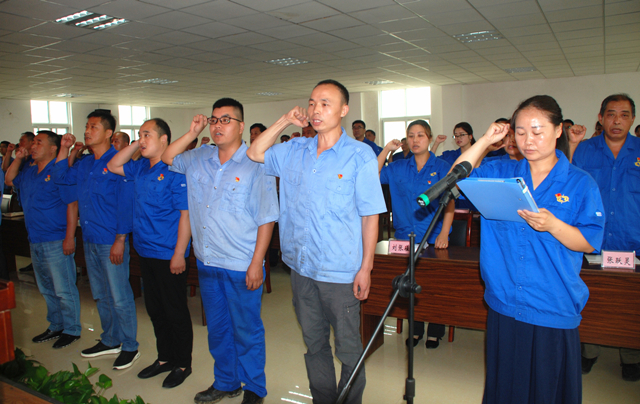? ? 在黨群工作部部長吳維芳帶領(lǐng)下,5名新黨員面對鮮紅的黨旗進(jìn)行了入黨宣誓,老黨員重溫了入黨誓詞。