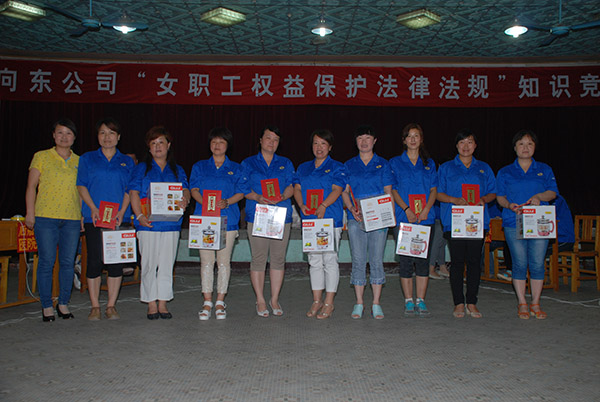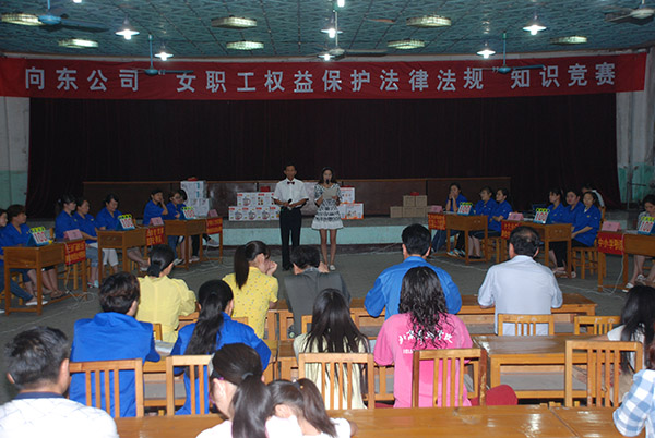 為推動婦女權益保護法律法規(guī)知識的學習普及,努力提高女工的法律意識和自我保護意識。7月29日晚,公司工會女工委在文化宮二樓會議廳舉辦了“女職工權益保護知識”答題競賽。南陽向東公司黨委書記姜華、北方向東公司總經(jīng)理助理趙天波、公司工會副主席王友志女工主任丁玲、南陽向東公司黨群工作部副部長吳維芳,公司各基層分工會主席和部分女工代表觀看了比賽。