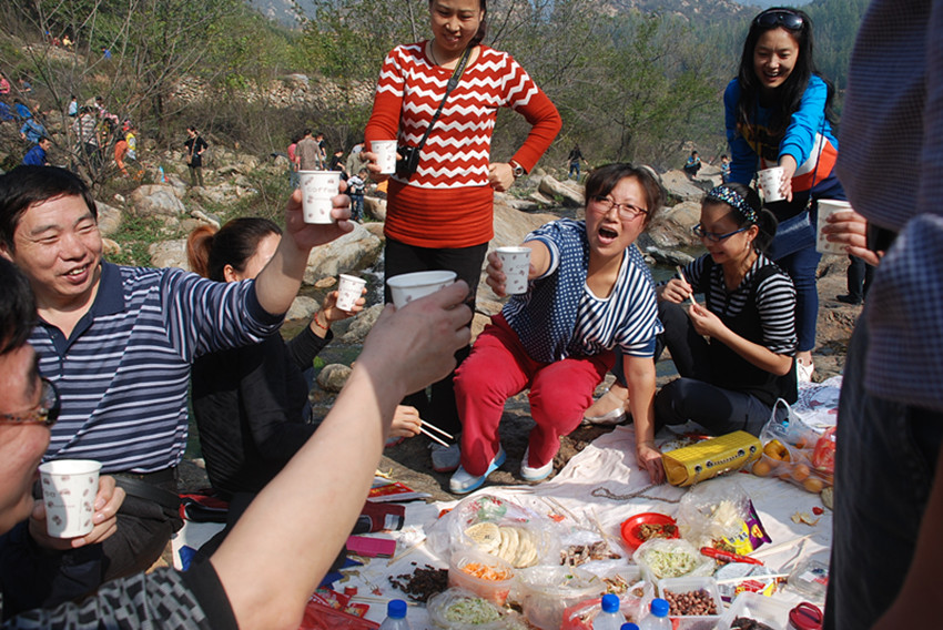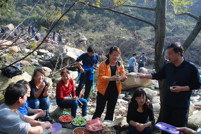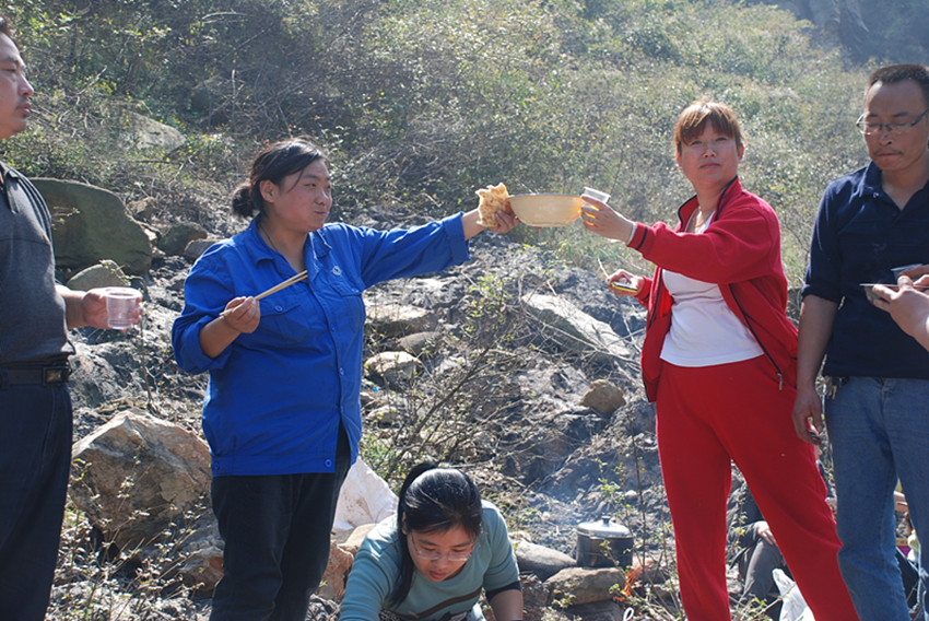 在自由活動(dòng)時(shí)間,有的人挽起褲腳跳入水中,歡快地到處捉泥鰍、逮螃蟹,有的拾柴埋鍋?zhàn)鲲?,有的拍照合影留念,有的放線垂釣,有的打牌娛樂(lè)休閑,有的高歌一曲現(xiàn)場(chǎng)助興。公司工會(huì)副主席王友志、女工主任丁玲先后到上下游各片區(qū)看望大家,并再三叮囑注意環(huán)境衛(wèi)生。之后大家吃著自己制作的豐盛午餐舉杯共飲,這正是秋游健走逛美景,其樂(lè)融融賞心悅。