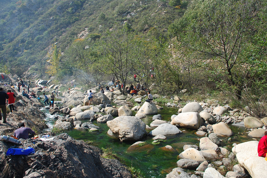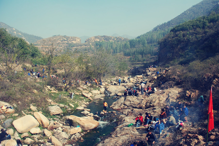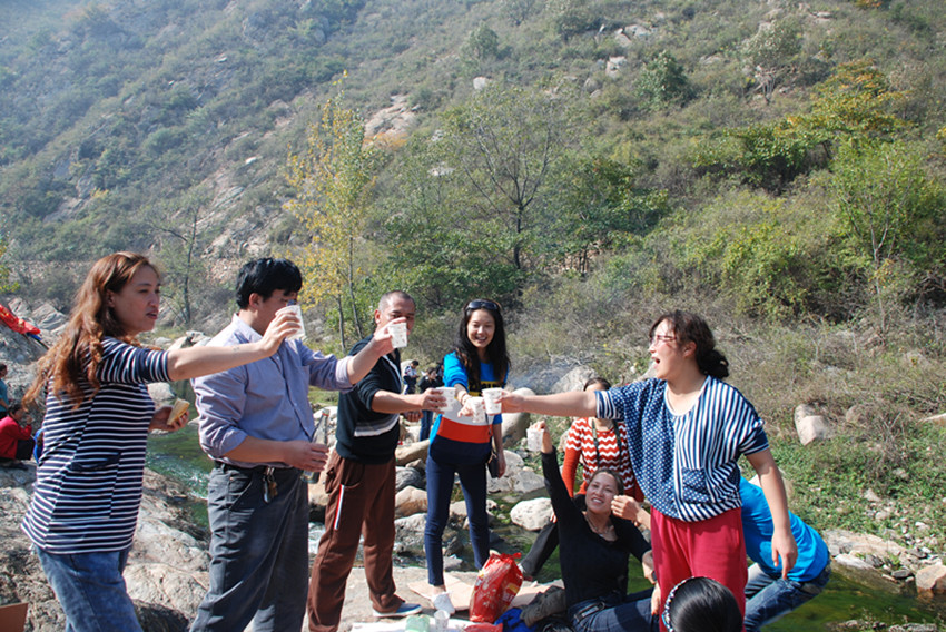 當(dāng)天晴空萬(wàn)里,艷陽(yáng)高照,是戶外活動(dòng)的好天氣。出發(fā)之前,工會(huì)副主席王友志跟大家交代了注意事項(xiàng),隊(duì)伍就浩浩蕩蕩出發(fā)了。一路微風(fēng)吹拂,彩旗飄楊?!拔疫\(yùn)動(dòng)我快樂(lè)”的旗幟在陽(yáng)光照射下顯得格外醒目。隊(duì)伍象一條長(zhǎng)龍盤繞在鄉(xiāng)間小道上,很是壯觀,為路人增添了一道亮麗的風(fēng)景線。一路上許許多多的自然景象讓大家看的眼花繚亂,目不暇接。大家邊走邊欣賞,邊走邊聊,留下了一路的歡聲笑語(yǔ)。經(jīng)過(guò)1個(gè)多小時(shí)的步行,九點(diǎn)多鐘大隊(duì)人馬陸續(xù)到達(dá)目的地,各單位拿著準(zhǔn)備好的食物、炊具到溝底河灘找位置安營(yíng)扎寨。